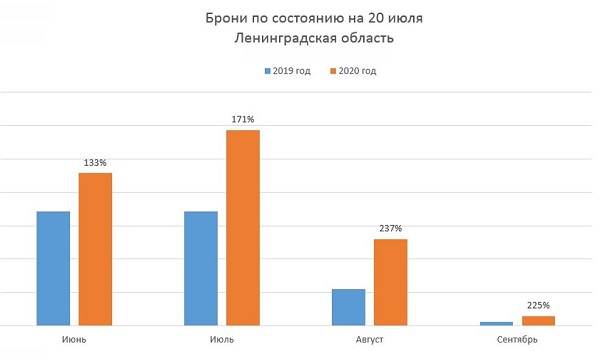 Положительная динамика ощущалась в июне и июле. Однако по мере окончания сезона белых ночей наблюдается снижение интереса к Санкт-Петербургу, что также подтверждается данными о бронированиях системы TravelLine.