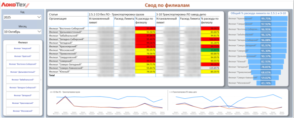 В целях бюджетного контроля внедрен классификатор транспортных расходов, и установлен лимит по каждому классу. При оформлении заявки 1С ERP выдаёт расчёт предварительной стоимости транспорта. Система автоматически отслеживает расход бюджета по перевозкам и блокирует заказы при превышении установленного лимита.