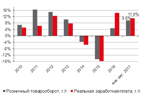 Снижение объема нового предложения происходит на фоне стабилизации макроэкономических показателей. «Начиная с 2016 года в Киеве, как и в стране в целом, наблюдается реальный рост заработной платы и розничного товарооборота. При этом если в прошлом году потребитель не был готов пропорционально доходам увеличивать расходы, то в этом году мы наблюдаем сопоставимые темпы роста данных показателей в Киеве. Это свидетельствует о восстановлении розничного рынка и стимулирует новое строительство», - отмечает Дарина Кулага, аналитик компании JLL (Украина).