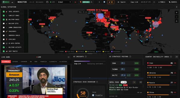 World Monitor — глобальная информационная панель в режиме реального времени осуществляет агрегацию новостей на основе искусственного интеллекта (ИИ), геополитический мониторинг и отслеживание инфраструктуры в едином интерфейсе для обеспечения ситуационной осведомленности.