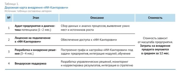 «ИИ-Канторович»: этапы, сроки, стоимость