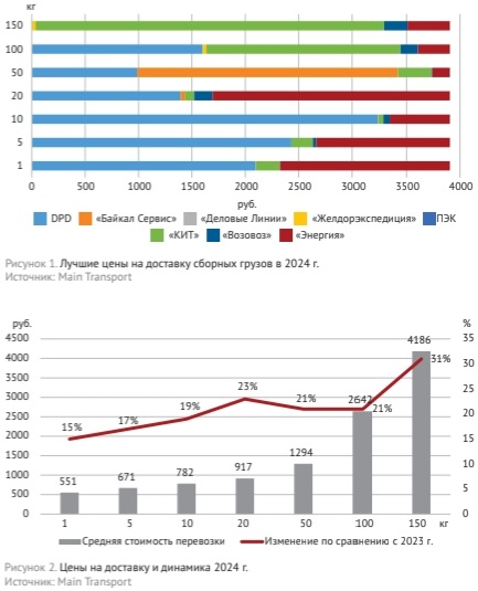 Основатель проекта Main Transport Роман Судоргин опубликовал ре-зультаты ежегодного рейтинга стоимости перевозки сборных гру-зов весом от 1 до 150 кг по России. Базой рейтинга являются цены на доставку по 3,9 тыс. внутрироссий-ских направлений для грузов ве-сом 1, 5, 10, 20, 50, 100 и 150 кг. По каждой комбинации сравниваются цены восьми крупных транспортных компаний.
