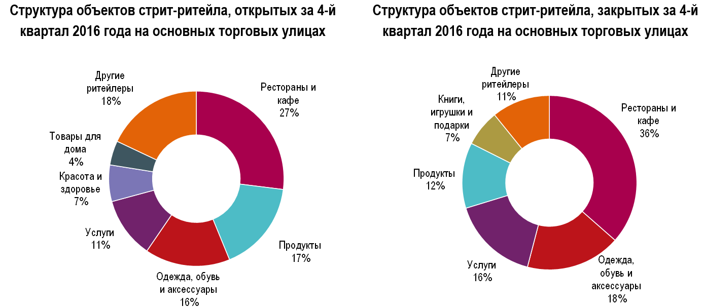 «Наибольшая ротация среди основных категорий арендаторов наблюдается в сегменте общепита: в 2016 году, как и годом ранее, изменения коснулись 19% кафе и ресторанов. Самое значительное снижение ротации произошло в сегменте услуг, что связано со стабилизацией на банковском рынке», - добавляет Владислав Фадеев.