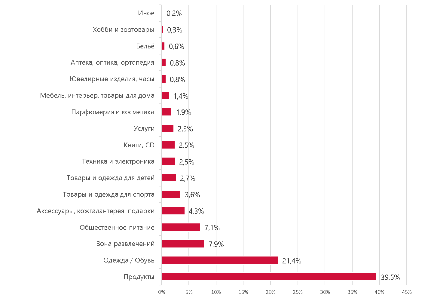 График 2. Структура площадей торгового центра по профилю арендатора (в % от GLA),